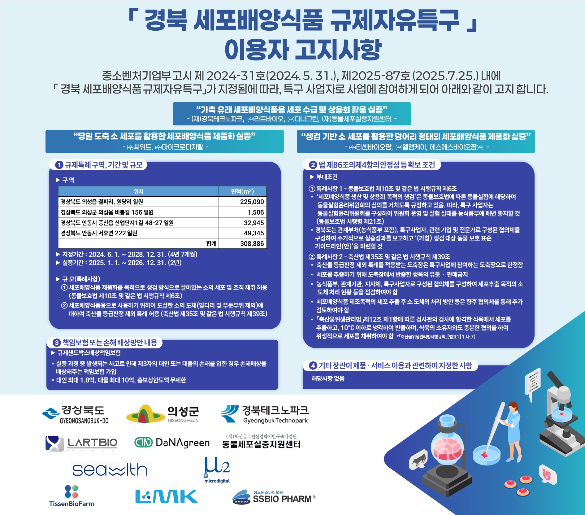 경북 세포배양식품 규제자유특구 이용자고지 사항